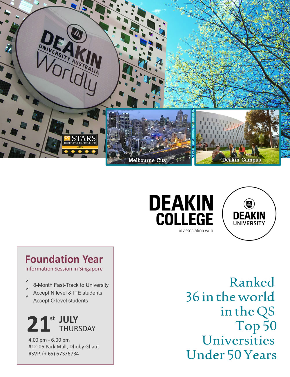 Deakin College Information Session @ 21 July 2016 Alternatively, please fill in the form to register: --Which Describes You Best?-- I'm ready to apply I need help on choosing university I have applied but I need help --Please select your nationality --SingaporeanMalaysianChineseIndonesianIndianOther --Select your highest education level-- N level ITE O level / iGCSE A level / IB Diploma (Private) Polytechnic Degree (or higher) Other * Terms & conditions apply Share this page with your friend: FacebookWhatsappEmail