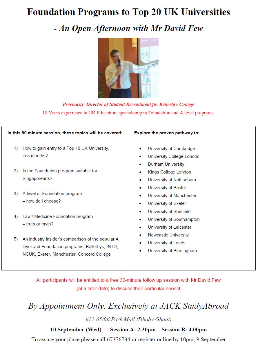 Exclusively in Singapore: An Open Afternoon with Mr David Few @10 Sept 2014 (Wed)