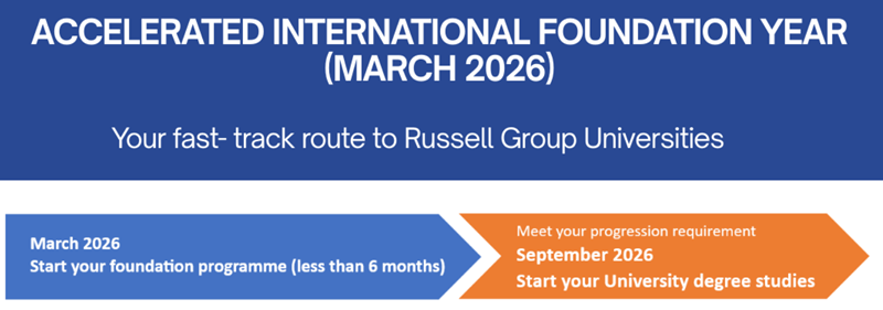 Why wait for the September intake when you can start earlier? Fast- track your studies from O-Levels to a UK uni in under 6 months with StudyGroup International Study Centres. The Accelerated International Foundation Year (March 2026 intake) is designed for students who want a faster, smarter route to a selected UK University, without taking a gap year.