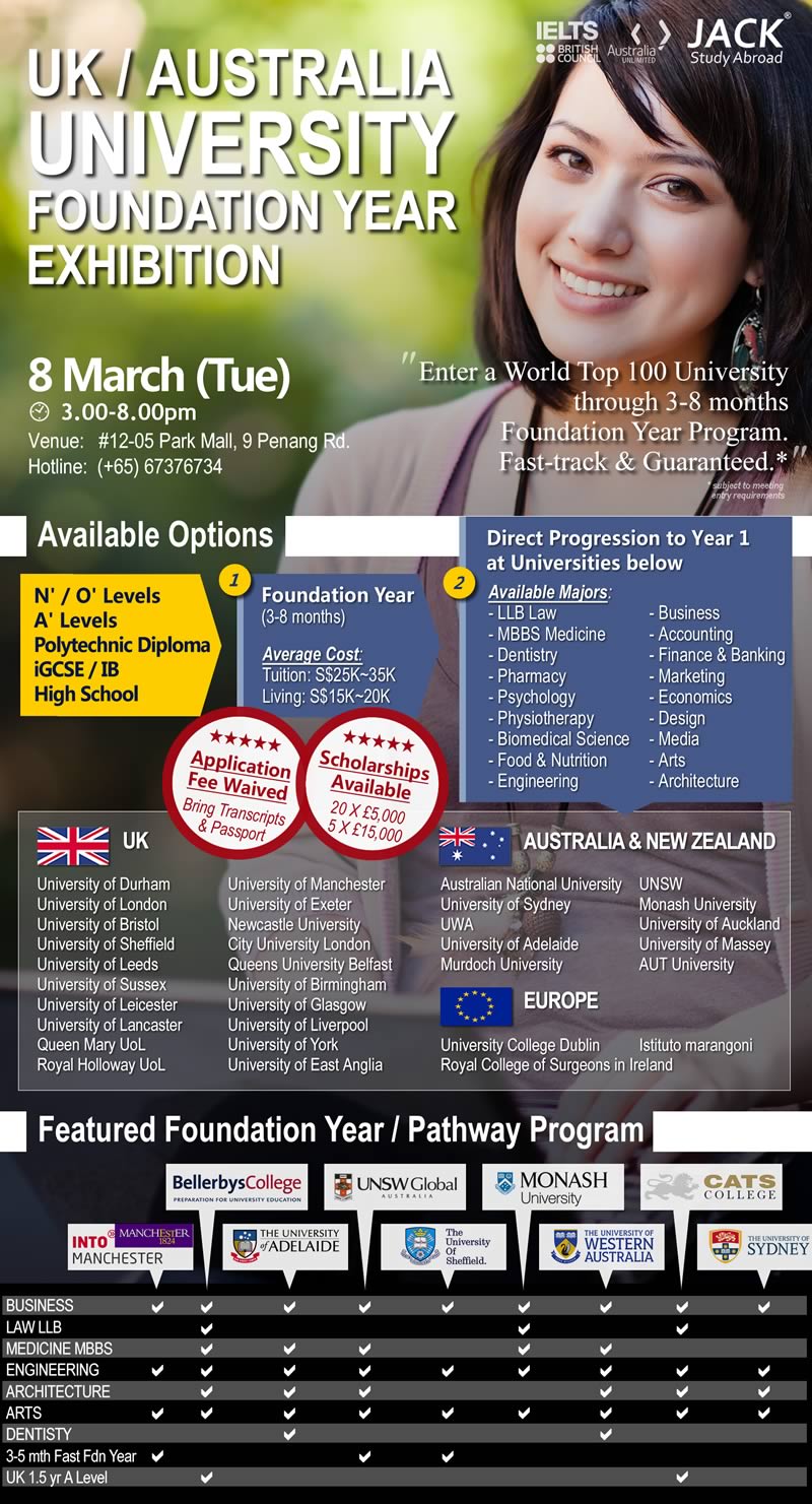 We have specially prepared this UK/Australia University Foundation Program exhibition for you. It’s suitable for N/O/A level students and some diploma students. Some highlights are: